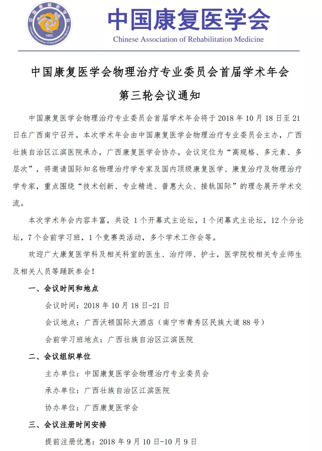 中國(guó)康復(fù)醫(yī)學(xué)會(huì)物理治療專(zhuān)業(yè)委員會(huì)首屆學(xué)術(shù)年會(huì) 第三輪會(huì)議通知